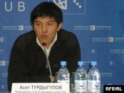 Қазақстан жастар ұйымының төрағасы Әсет Тұрдығұлов. Алматы, 27 қараша, 2008 жыл.