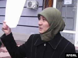 Айман Кәрімбаева Азаттық радиосының тілшісіне Мұғалжар аудандық сотының шешімін көрсетіп тұр. 22қараша, 2009 жыл.