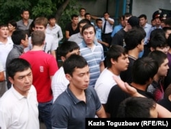 Қамаудағы азаматтардың туыстары түрме маңына жиналғаны туралы видео. Алматы, 30 шілде 2010 жыл.