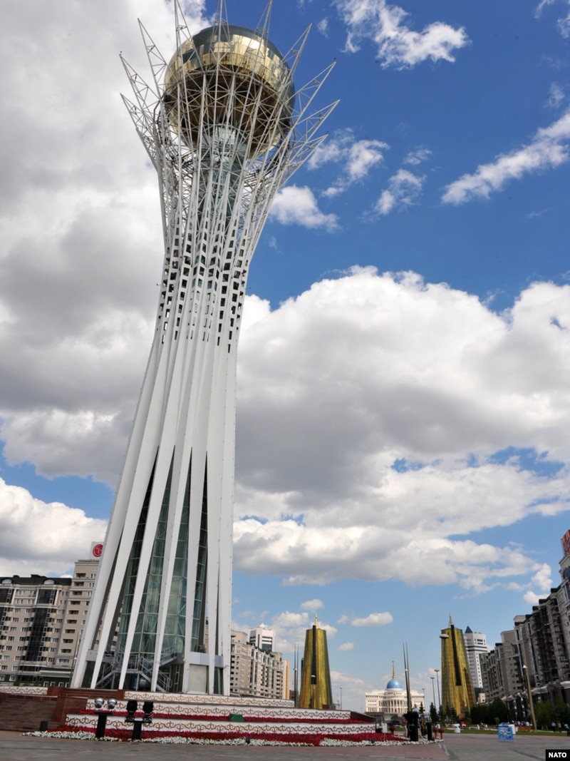 Және де әр жерден құрылыс жүріп жатқанынан хабардар ететін, биік көтергіш крандар менмұндалайды. Осының бәрінің ортасында Бәйтерек мұнарасы тұр, оның сыртқы түрінің қандай болу керектігін ел президенті ойлап тауыпты деген сөз бар. Іңір уақытында қаланың әр шетінен көрінетін бұл нысан құдды бір аяғы аспаннан келіп, төңкеріліп қалған Эйфель мұнарасы тәрізді, оның ортасында қапталында тіреулері бар үлкен алтын жұмыртқа қойылған. Сөйтіп, Эндрю Принц өзінің Қазақстан жайлы естеліктерін келесідей шабытқа толы сөзбенен аяқтапты: «Астана – бұл Қазақстан ертеңінің жарқырап көрінген нышаны».