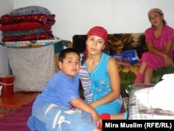 Диас, Элмира (ортада) және Ұлтуар Анарбековтер аядай бір бөлмені жалдап тұрып жатыр. Шымкент, 29 тамыз 2010 жыл.