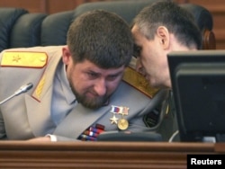 Шешенстан президенті Рамзан Қадыров пен Ресейдің ішкі істер министрі Рашид Нургалиев парламент ғимаратында. Грозный, 19 қазан 2010 жыл
