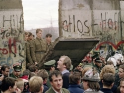 Екі Германияның қайта қосылу символына айналған Берлин қабырғасын құлату сәті. Берлин, 11 қараша 1989 жыл
