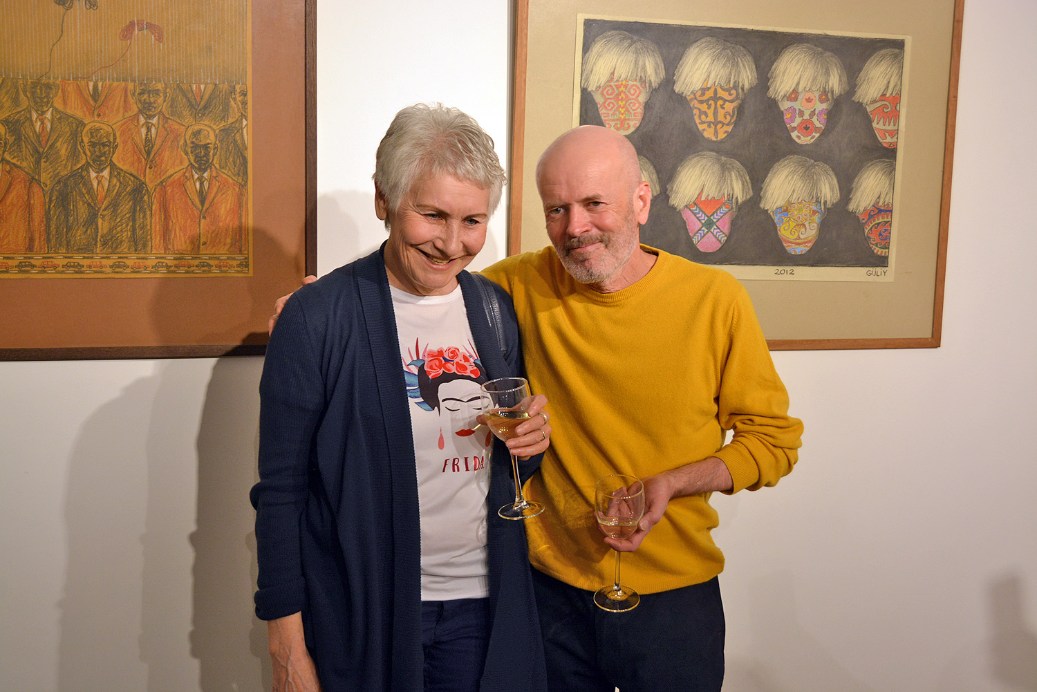 Суретші Шамиль Гулиев пен куратор Валерия Ибраева көрмеде. Алматы, 4 сәуір 2019 жыл.