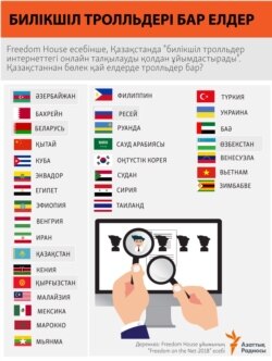 Ұйым есебінше, Қазақстанда "билікшіл тролльдер интернеттегі онлайн талқылауды қолдан ұйымдастырады".