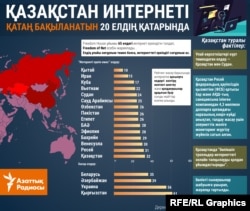 Freedom House ұйымының жазуынша, интернеттегі еркіндік азая түскен 33 елдің арасында Қазақстан да бар.