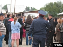 Үйлерін заңдастыра алмай жүрген тұрғындардың жиыны полиция бақылауында. Алматы, 17 қыркүйек, 2009 жыл.