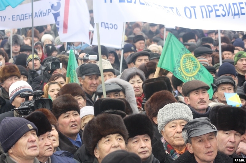 Қазақ жерін Қытайға бермеуді талап етіп, оппозициялық партиялар өткізген наразылық жиыны. Алматы, 30 қаңтар 2010 жыл.