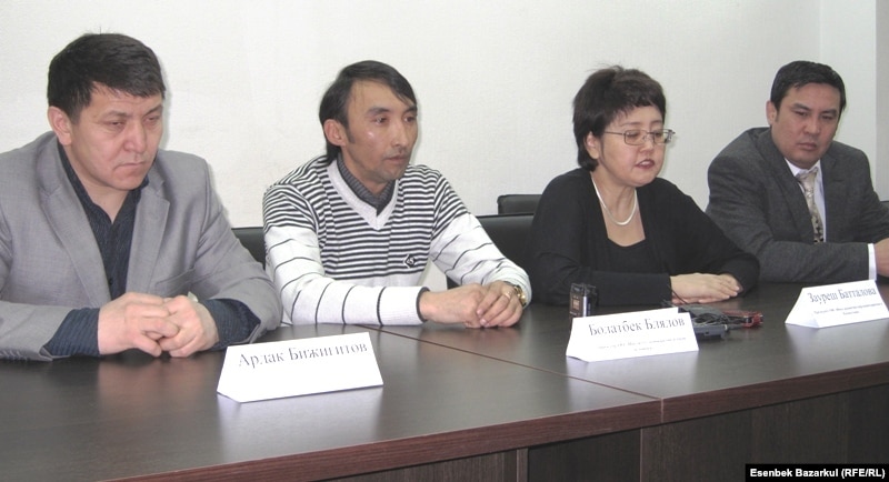 Солдан оңға: Ардақ Бижігітов – «Адам құқықтары жөніндегі миссия», Болатбек Біләлов – «Адам құқықтары мен демократия институты», Зәуреш Батталова – «Қазақстанда парламентаризмді дамыту» қоры және Бауыржан Шекербекұлы – «Ұлт бірлігі» қоры. Астана, 5 наурыз 2011 жыл.