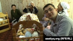 Аманжол Қаберов (оң жақта) егіз баласы қырқынан шыққан күні. Деркөл ауылы, Батыс Қазақстан облысы, 15 ақпан 2011 жыл.