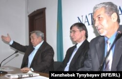 Солдан оңға: Кәрішал Асан-Ата, Жасарал Қуанышәлі және Хасен Қожа-Ахмет. Алматы, 28 желтоқсан 2010 жыл.