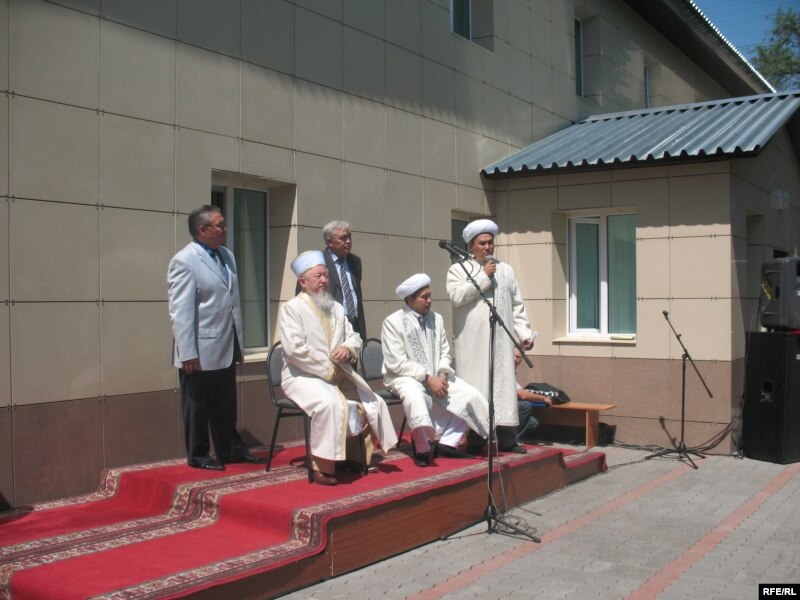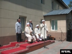Алматы орталық мешітінің бас имамы Құлмұхамбет Махамбет медресенің ашылуында аят оқып тұр. Алматы, 10 тамыз, 2009 жыл.